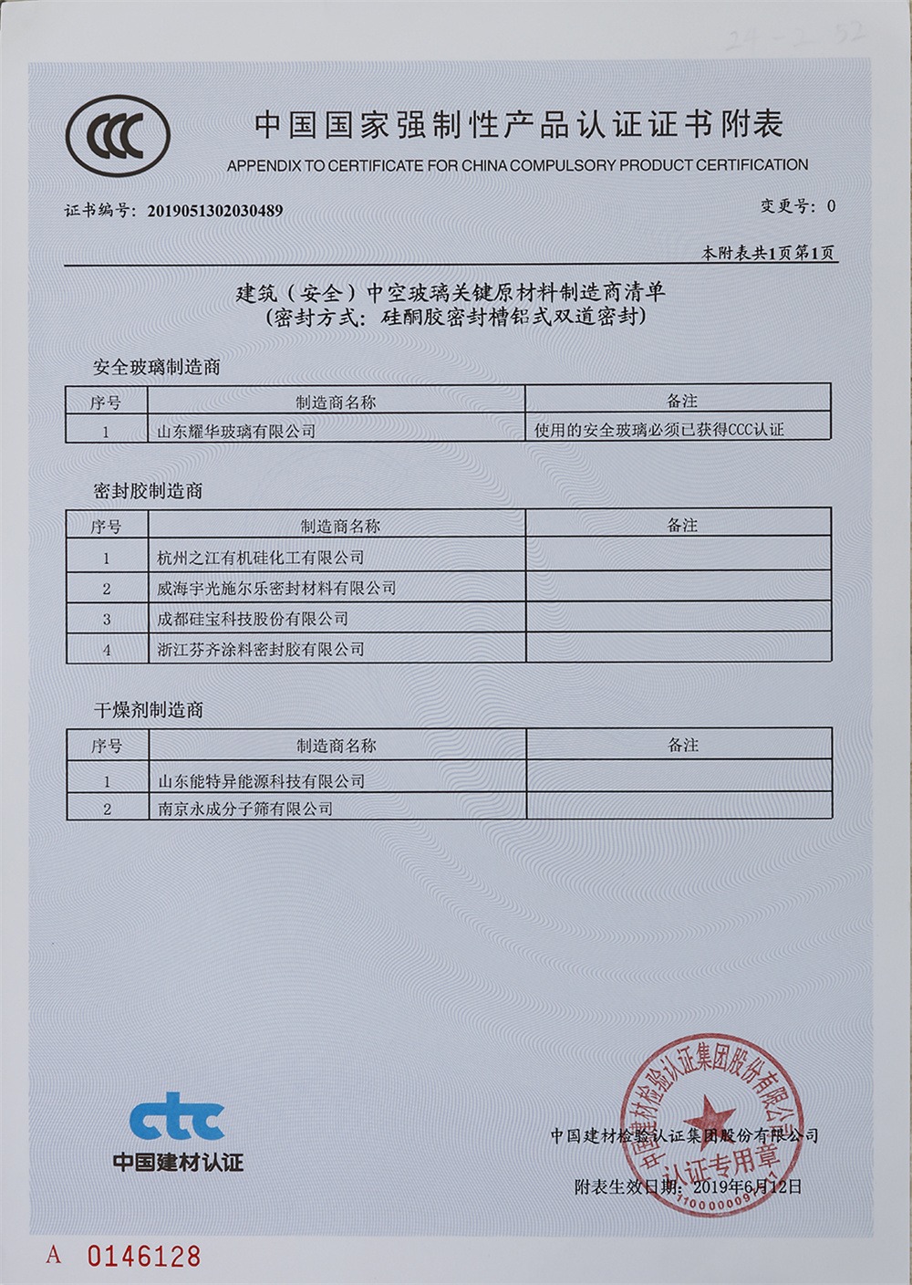 Main drafter of group standard of technical specification for production of grooved aluminum insulating glass